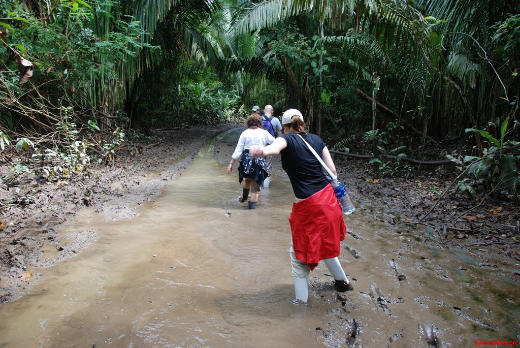 Im Park angekommen haben wir uns einen Fuehrer genommen, der uns durch den Wald fuehren sollte. Wir mussten uns davon ueberzeugen lassen, Gummistiefel anzuziehen. Dann ging es rein in den Wald – und wir konnten auch gleich eine Boa constrictum sehen.