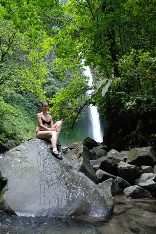 Heute Morgen haben wir uns also ganz in Cowboy/Cowgirl manier in die Westernsaettel geschwungen und sind zu Pferde zum nahe gelegenen Wasserfall getrabt- wow – auch dass hat sich mal wieder gelohnt. Da es in La Fortuna deutlich waermer ist, als noch im Monteverde, konnten wir sogar ein erfrischendes Bad nehmen in den Auslaeufen des Wasserfalls im kristallklarem Wasser.