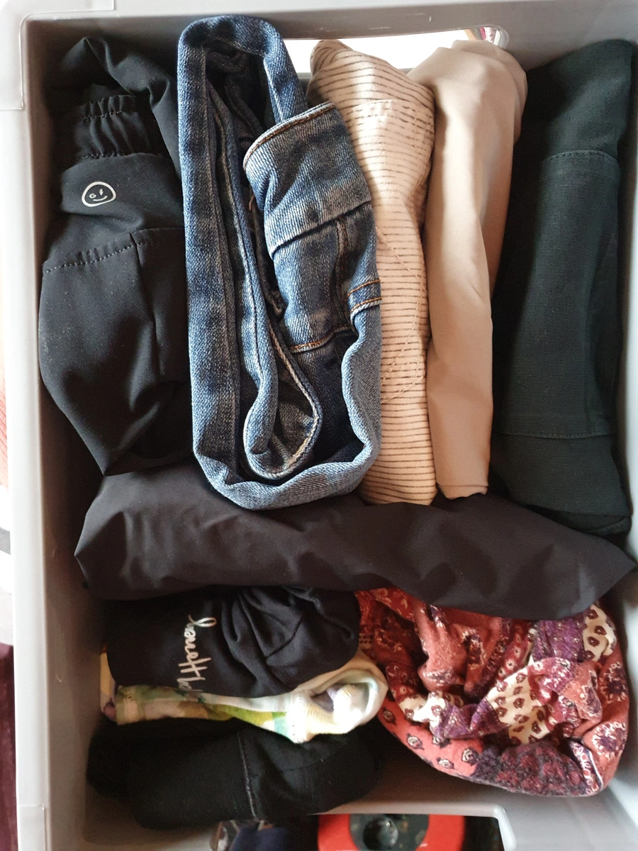 - Hauptsächlich Funktionskleidung heraussuchen und geschickt falten