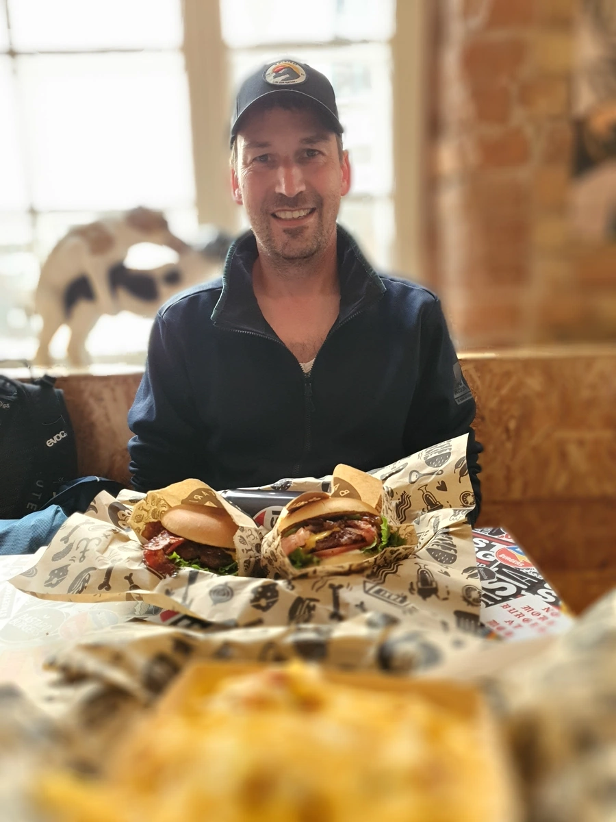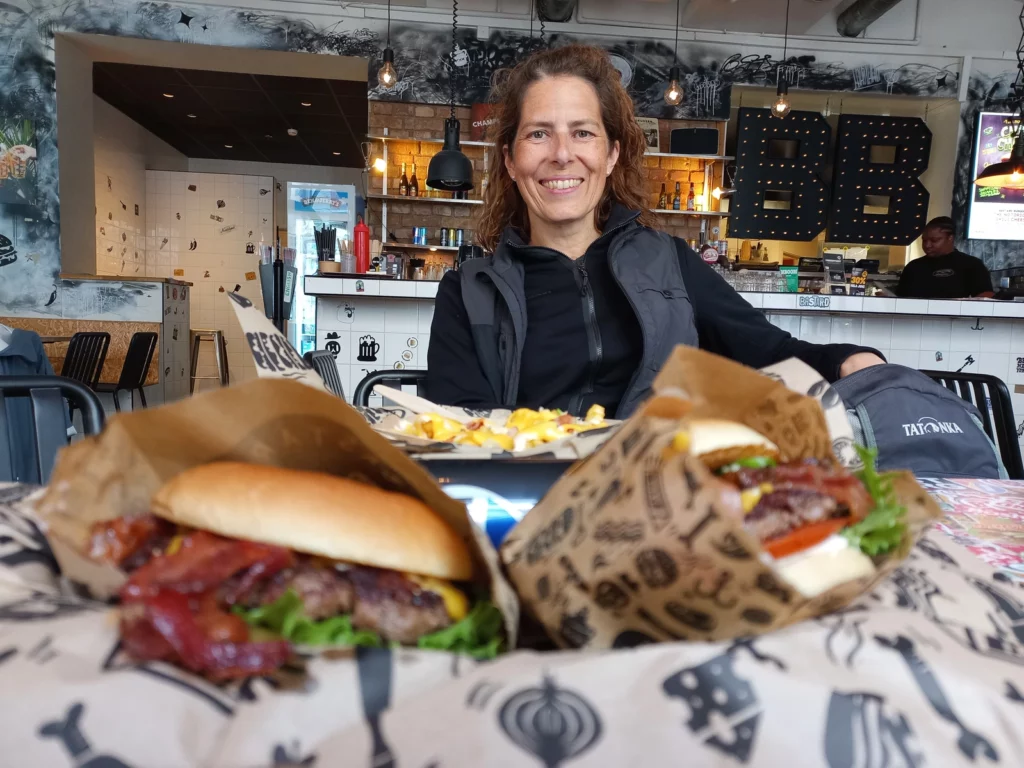 - Jetzt noch ein frühes Abendbrot bei `Bastard Burger´und den nächsten Schauer für´s Heimradeln abpasse. Die Klamotten trockne ja auch sooo gut im WoMo – mmhhhh.