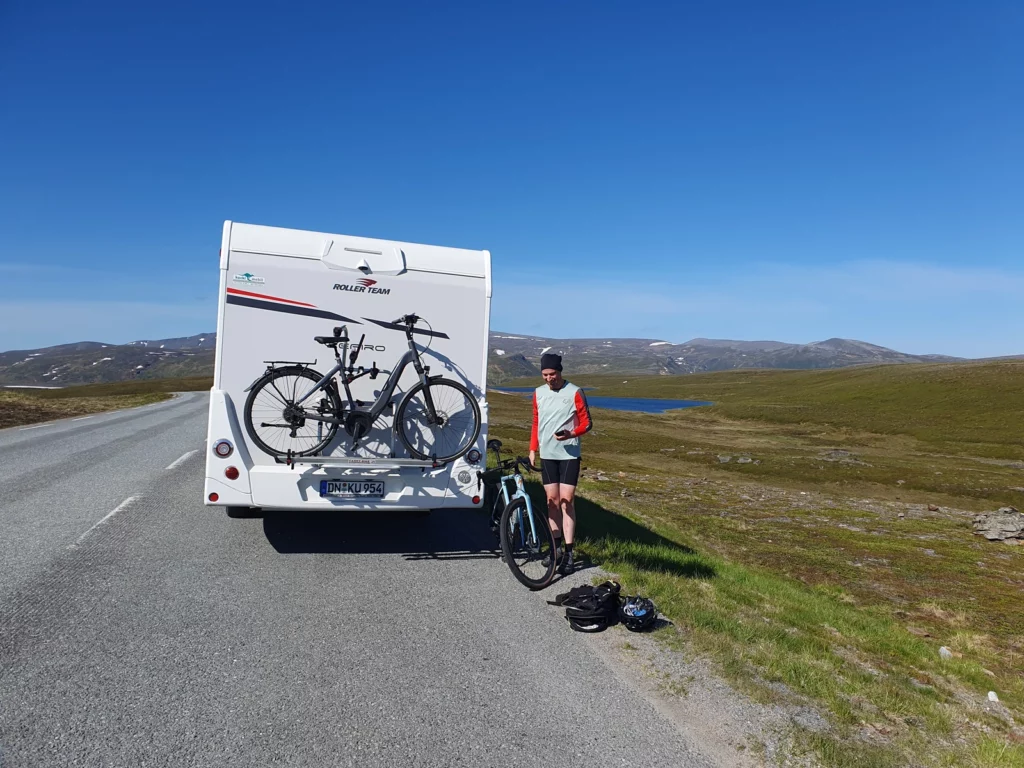 Früh aufgestanden, damit Frank einen Teil der Rest-Strecke zum Nordkap mit dem Fahrrad fahren kann. Nach einem schnellen Frühstück fahren wir mit dem Wohnmobil 70 km vor das Nordkap, wo Frank seine Radtour beginnt.