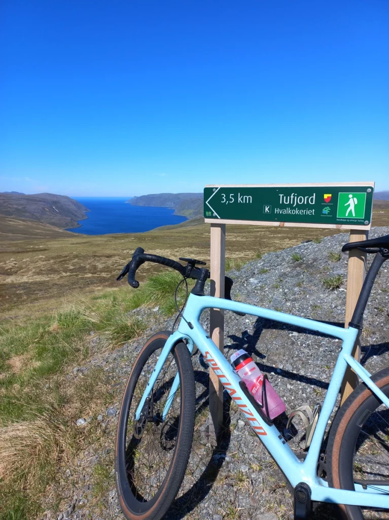 - Die Tour führt entlang des EV1 (https://de.eurovelo.com/ev1) und ist wirklich bezaubernd schön. Das Wetter heute ist perfekt bei Temperaturen um die 15 °C und Sonnenschein. Auf dem Weg sind einige Tunnel, wie zum Beispiel der Nordkaptunnel (https://de.m.wikipedia.org/wiki/Nordkaptunnel) der 212 m unterhalb des Meerespiegels verläuft und die beiden ersten und letzten Kilometer je 10% Steigung haben. Hier sind Beleuchtung und reflektierende Materialien für Sichtbarkeit ratsam.