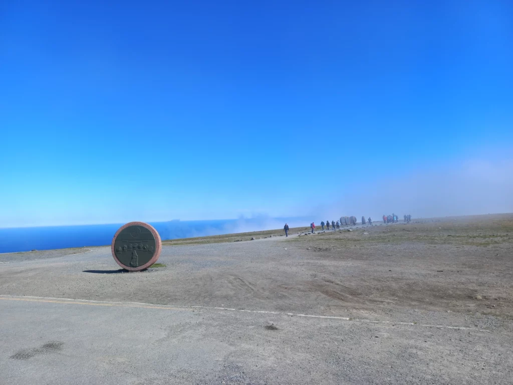 Wir machen eine gemütliche Mittagspause im Wohnmobil, denn draußen ist es ziemlich kalt. Danach erkunden wir das Nordkap zu Fuß. Das Himmelblau ist endlos und traumhaft schön. Das Visitor-Center lassen wir aus, da der Eintritt 330 NOK (30€) pro Person kostet und wir schon genug für das Parken gezahlt haben.