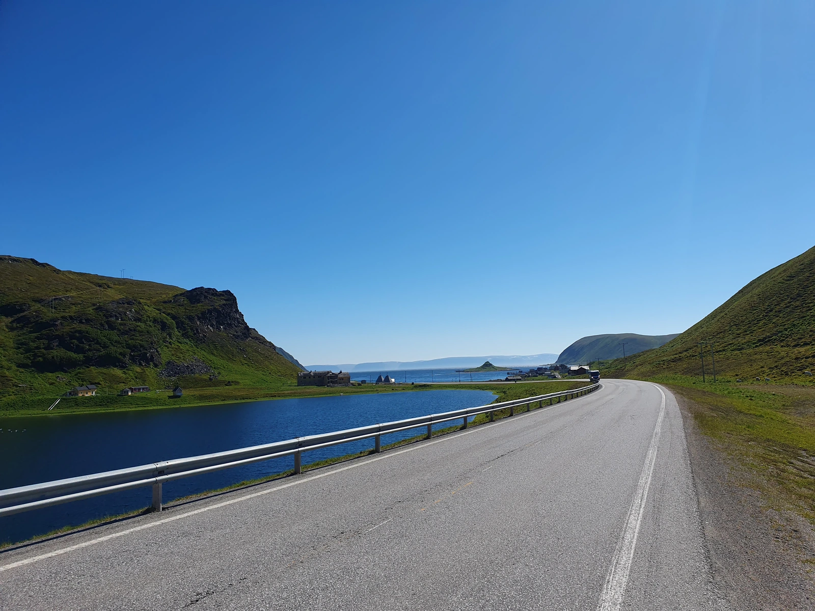- Die Tour führt entlang des EV1 (https://de.eurovelo.com/ev1) und ist wirklich bezaubernd schön. Das Wetter heute ist perfekt bei Temperaturen um die 15 °C und Sonnenschein. Auf dem Weg sind einige Tunnel, wie zum Beispiel der Nordkaptunnel (https://de.m.wikipedia.org/wiki/Nordkaptunnel) der 212 m unterhalb des Meerespiegels verläuft und die beiden ersten und letzten Kilometer je 10% Steigung haben. Hier sind Beleuchtung und reflektierende Materialien für Sichtbarkeit ratsam.