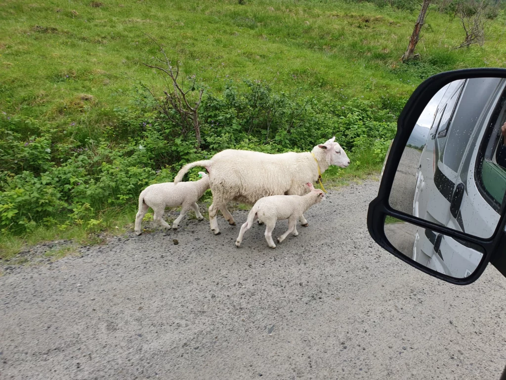 Bei Rückfahrt entdecke ich ein totes Lamm, was uns und andere Touristen zunächst ratlos macht. Frank ruft die Polizei an, die uns rät, das Lamm aus dem Weg zu räumen, was schließlich ein Finne übernimmt.
