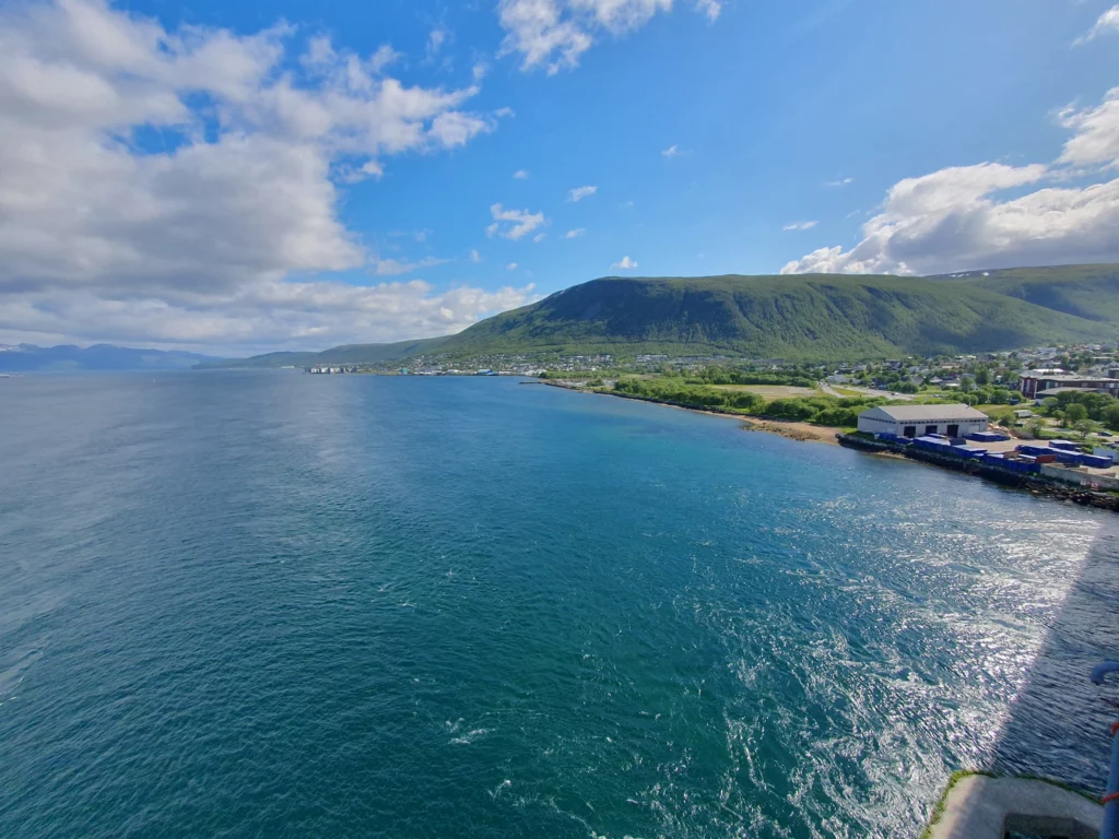 Die Sonne kitzelt uns schon im WoMo an der Nase. Wir befinden uns immer noch nördlich des Polarkreises, wo es bis Ende Juli nicht dunkel wird und alles über 10 Grad als Sommer gilt. Sobald die Sonne rauskommt, tragen die Einheimischen Sommerkleider und Sandalen, während ich mich heute in Merinoshirt, Softshelljacke, langer Steppweste, Stirnband, Jeans und Sonnenbrille wohlfühle.