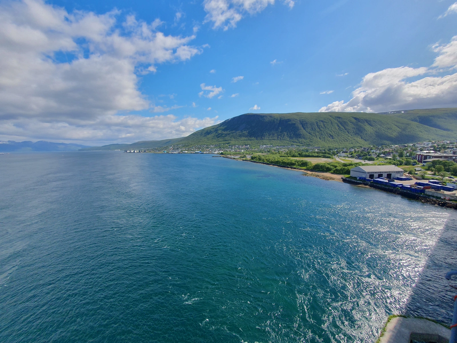 - Wir lassen uns Kaffee und Snack schmecken ( habe aber schon besseres bekommen) mit Blick auf den Fjord und Sonne im Gesicht