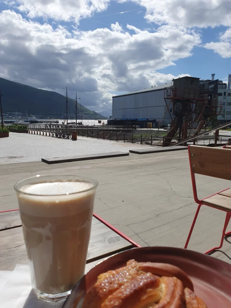 - Bevor das Hurtigruten-Schiff die Passagiere abe 14 Uhr in die Stadt spült, gönnen wir uns noch einen Pause in der Neustadt. Die Bäckerei Vervelt ist eien wirklich tolle Location integriert in das neu angelegt und sehr moder und doch harmonisch eingefügte Hafenviertel.