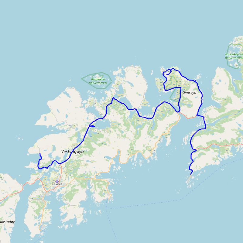 (Henningsvær > Gimsøyasand > Bøstad > Haukland)