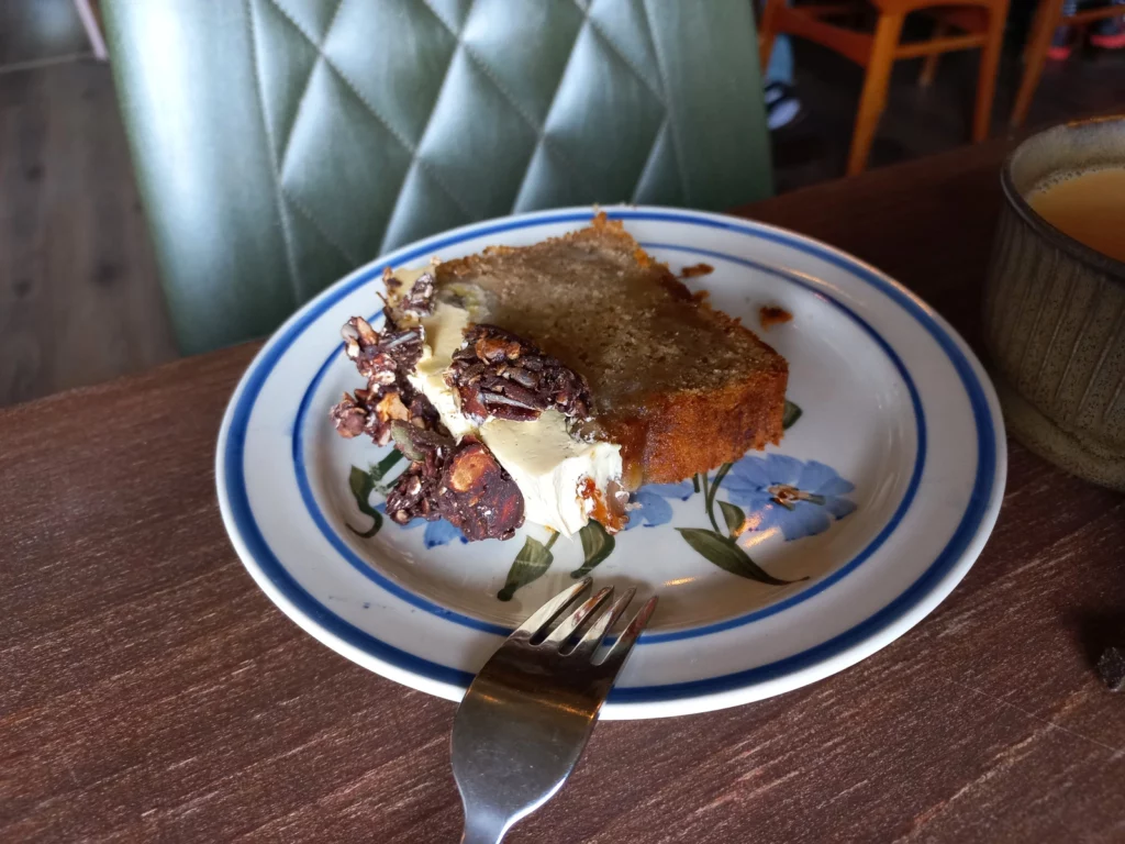 - Frank hat sich Kaffee & Kuchen verdient. Da komme ich doch gerne mit. Insbesondere, da wir ein ganz süßes, gemütliches Café (Café Furu) entdecken mit wirklich sehr sehr leckerem Kuchen. Sogar vegan (=laktosefrei). Seit Anfang der reise wahrscheinlich der beste Kuchen! (Bananbread & Blaubeeerstreusel) Sogar der Kaffee ist hier richtig lecker. Ich könnte hier noch etwas bleiben, doch die Vikinger warten….