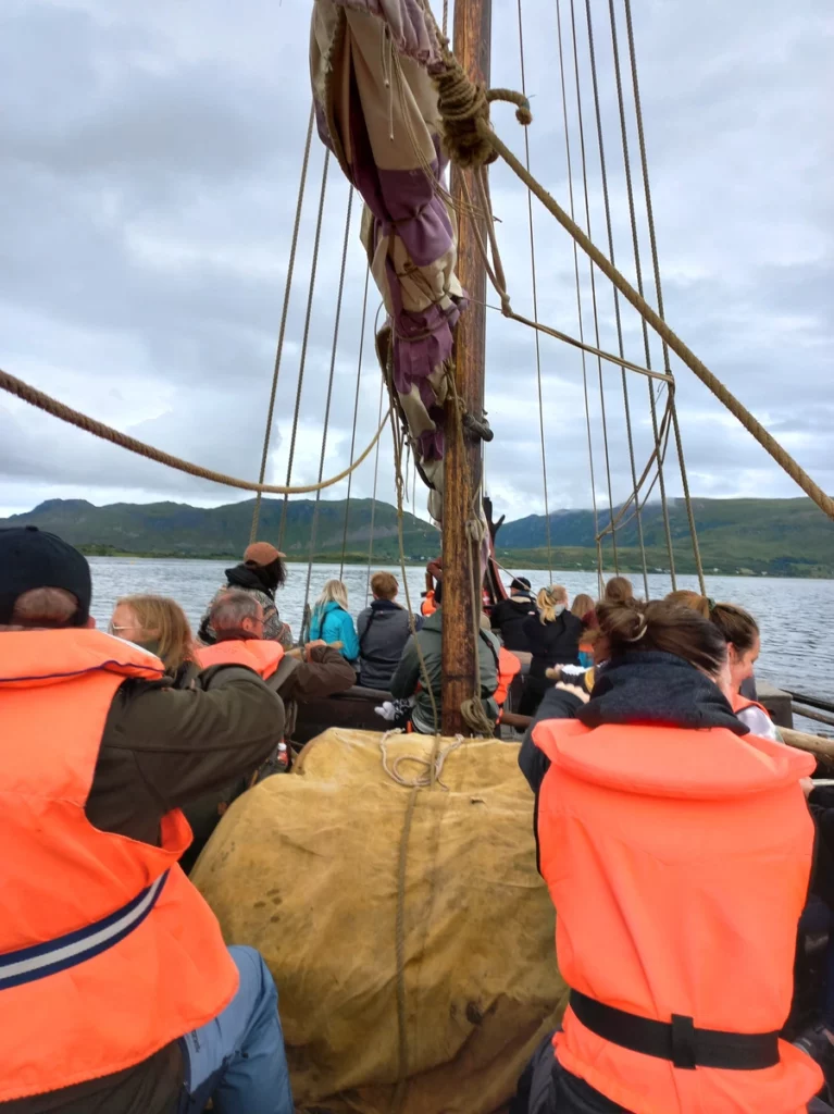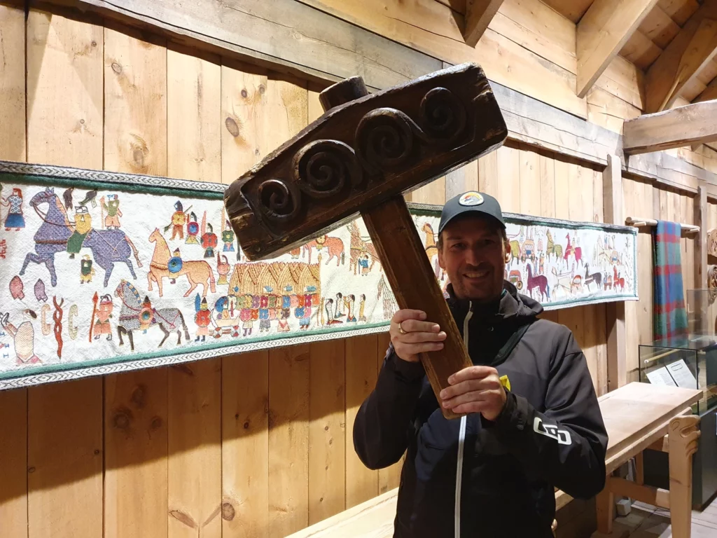 Auf Vestvågøya verdient sich Frank eine Pause mit Kaffee und Kuchen. Wir entdecken das gemütliche Café Furu, das den bisher besten Kuchen der Reise bietet – veganes Bananenbrot und Blaubeerstreusel. Auch der Kaffee ist hervorragend, und ich könnte hier noch länger bleiben, aber die Wikinger warten. Wir fahren weiter zum Torfdalshalse, einem schönen Aussichtspunkt mit tollen Rastplätzen und Ver- und Entsorgungsmöglichkeiten. Danach besuchen wir das Wikinger-Museum. Tauchen ein in ihre Traditionen mit einer Bootsfahrt, Bogenschießen, Hammerwerfen, … und lassen den Tag an der weißen Strandbucht von Haukland ausklingen.