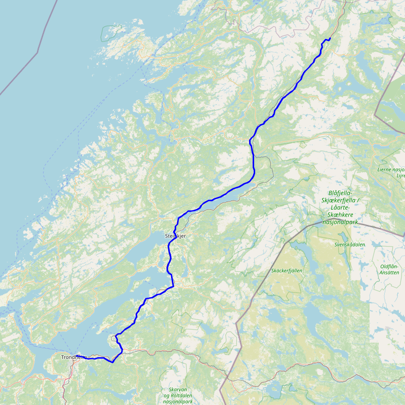 (Namsskogan > Steinkjer > Trondheim)