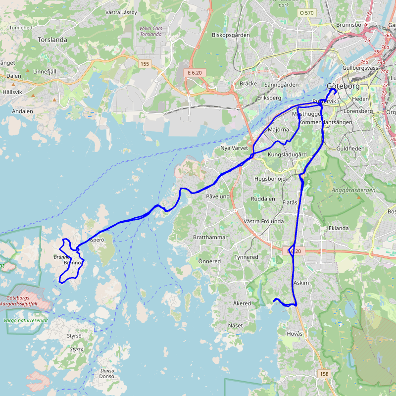 (Askim > Göteborg > Brännö > Göteborg > Askim Strand):