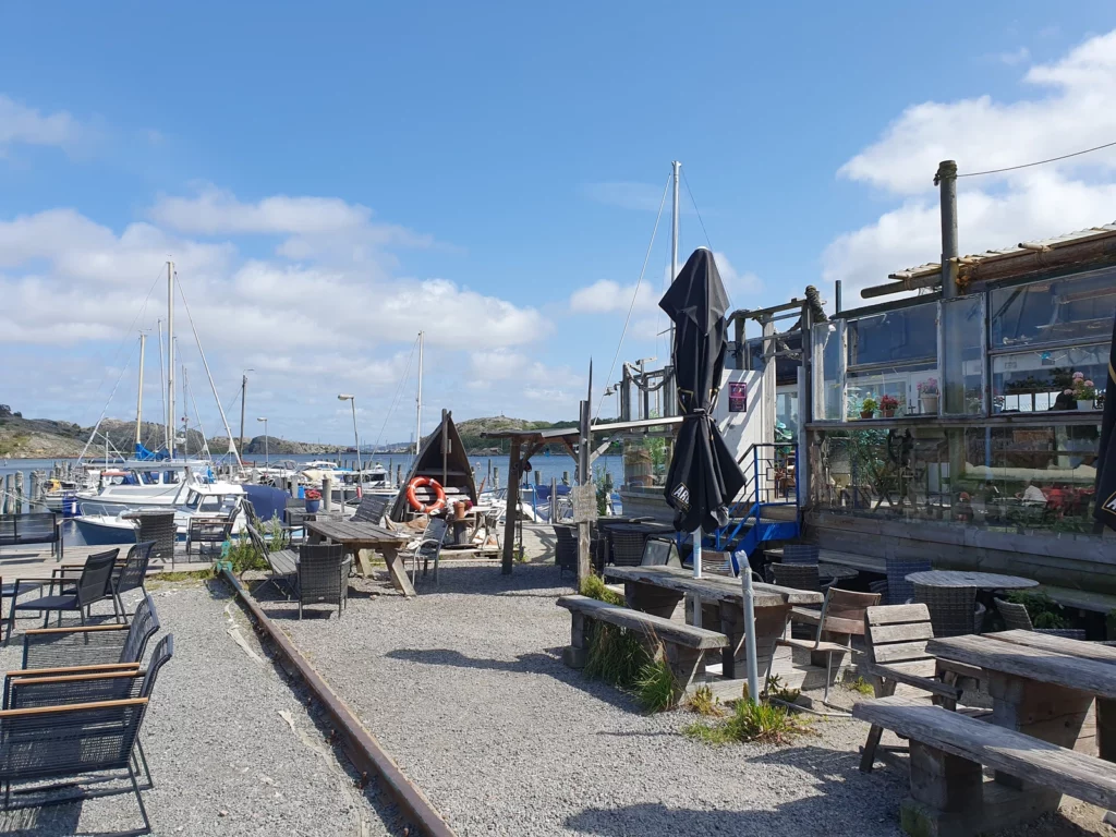 Auf Brännö angekommen, starten wir unseren Tag in einer coolen Surfer-Sea-Bar. Nach einer kleinen Stärkung zeigt uns Frank als fabelhafter Guide die Insel. Edda, mit ihren 82 Jahren, meistert tapfer den Weg über Stock, Stein und Matsch – einfach klasse! Mit perfektem Timing sind wir 15 Minuten vor Abfahrt wieder am Fähranleger. Dagmar und Frank besorgen in letzter Minute noch Eis, bevor wir die Fähre zurück nehmen.