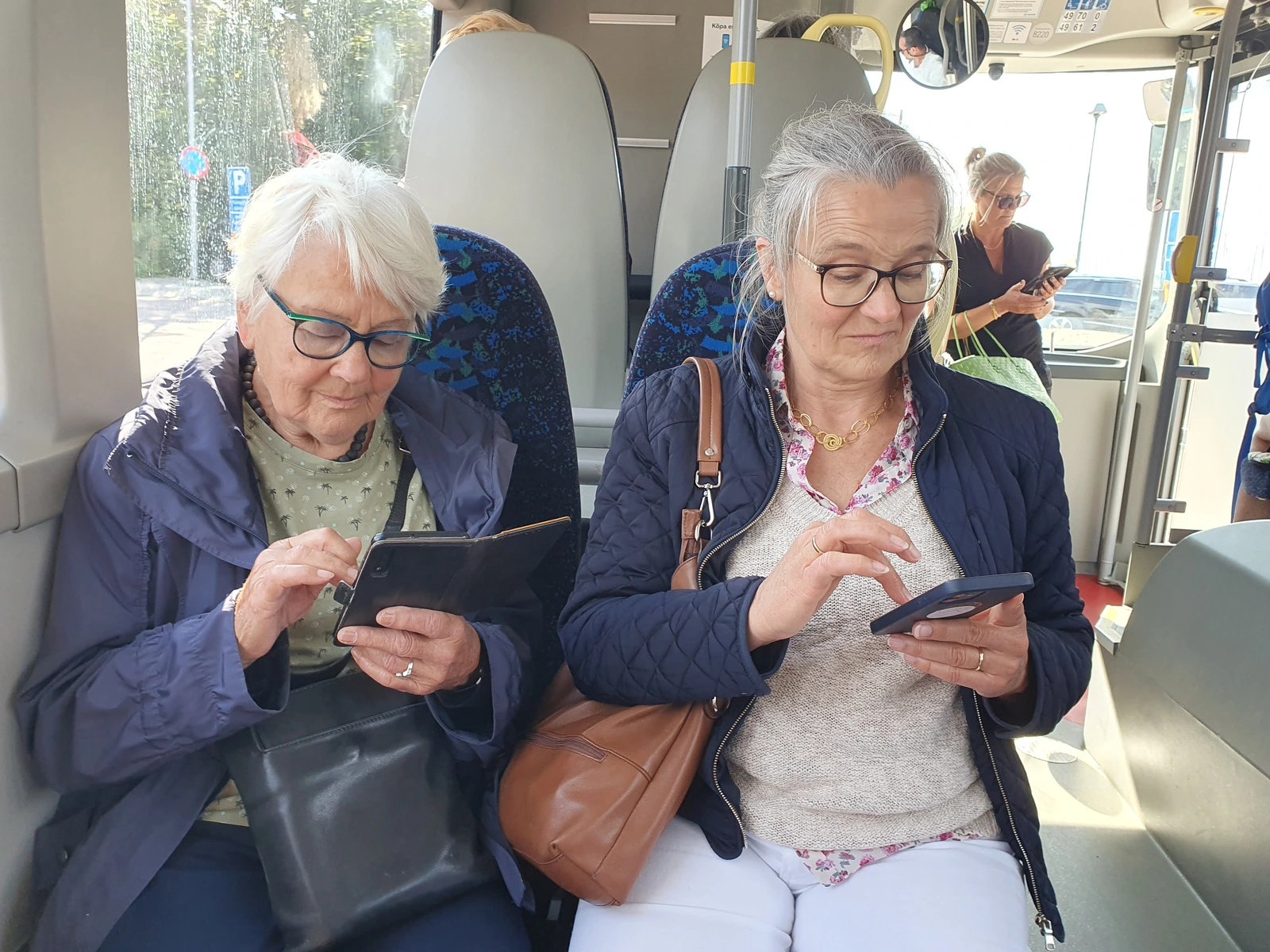 - In der Stadt steigen wir um in die Straßenbahn (linie 11) die uns zur Fähre bringt. Wir ergattern zwei letzte Sitzplätze und die Bahn wir immer voller. Die Türen gehen kaum noch zu. Mit stopp-und-go quäulen wir uns aus der Stadt Richtung Fähranleger.